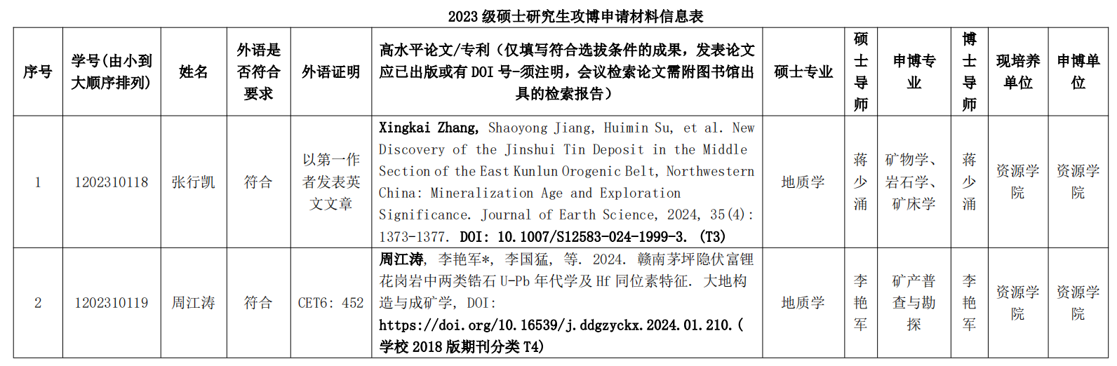经硕士研究生个人申请、导师推荐和公司初审,2023级硕士研究生申请提前攻读博士学位拟推荐名单公示如下。如有异议请公示期内书面反馈意见至公司研究生科(336室)。联系人:赵老师,电话:67883627。