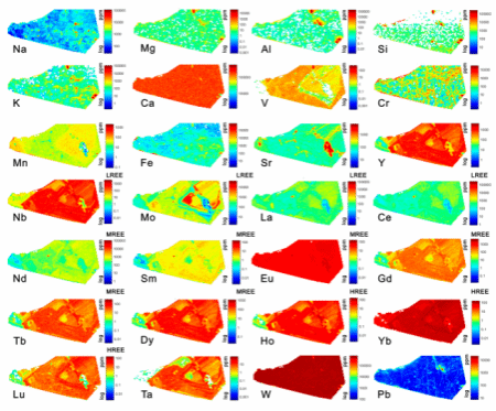 图8 样品Y50的原位LA-ICP-MS微量元素mapping