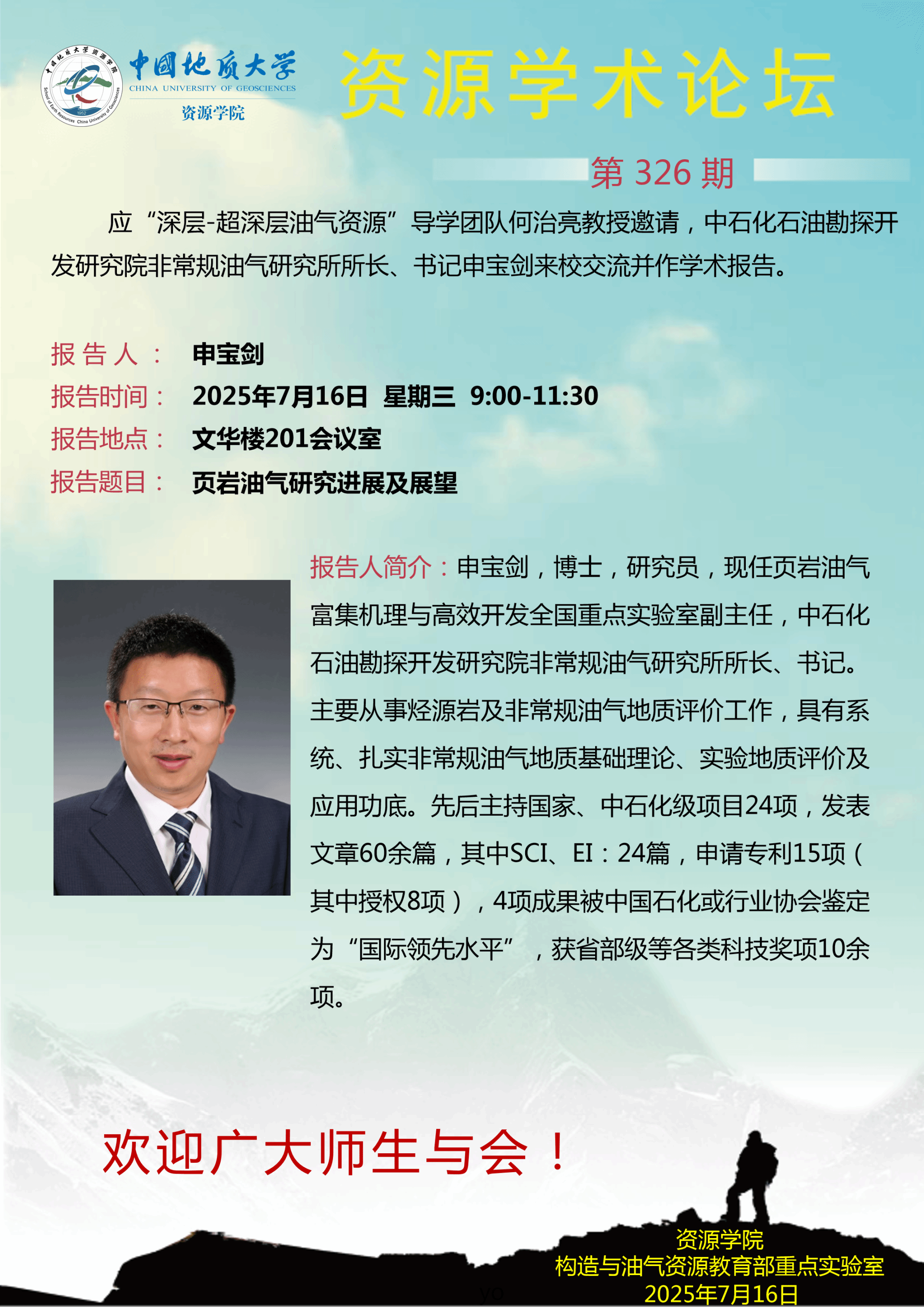 【7月16日】第326期资源学术论坛:申宝剑学术报告
