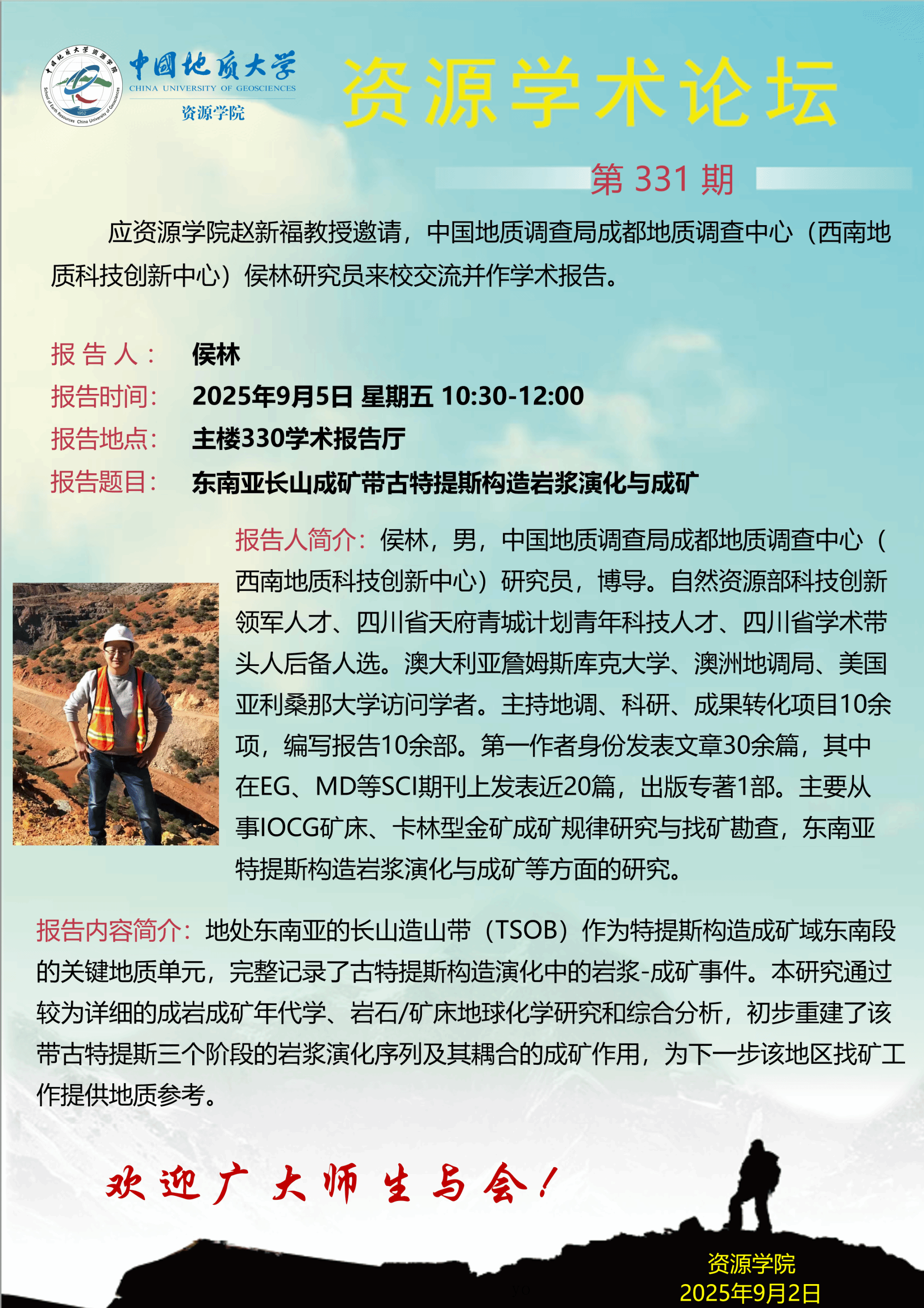 【9月5日】第331期资源学术论坛:侯林学术报告