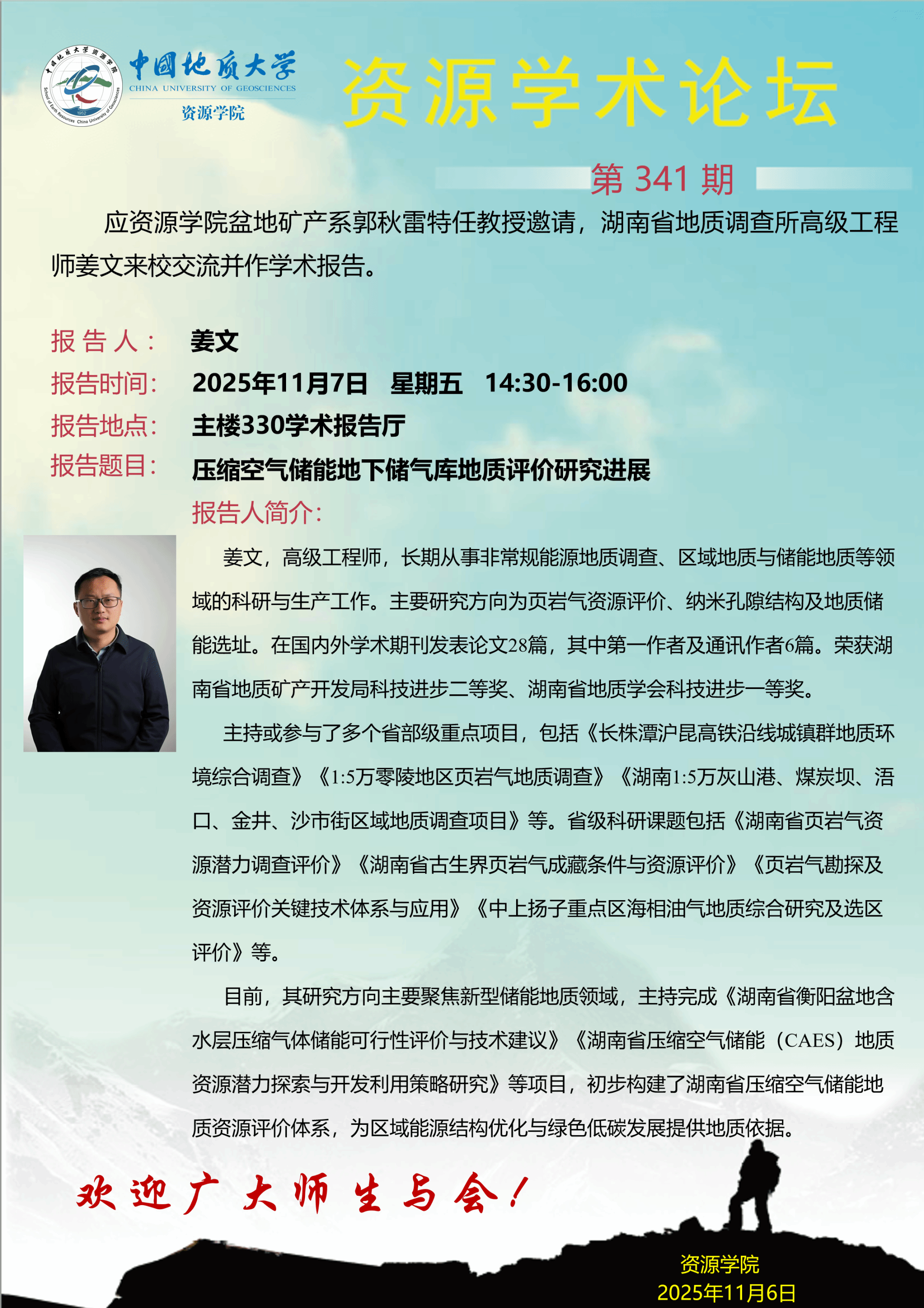 【11月7日】第341期资源学术论坛:姜文学术报告