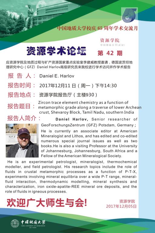 [12月11日]第42期资源学术论坛:Daniel E.Harlov学术报告