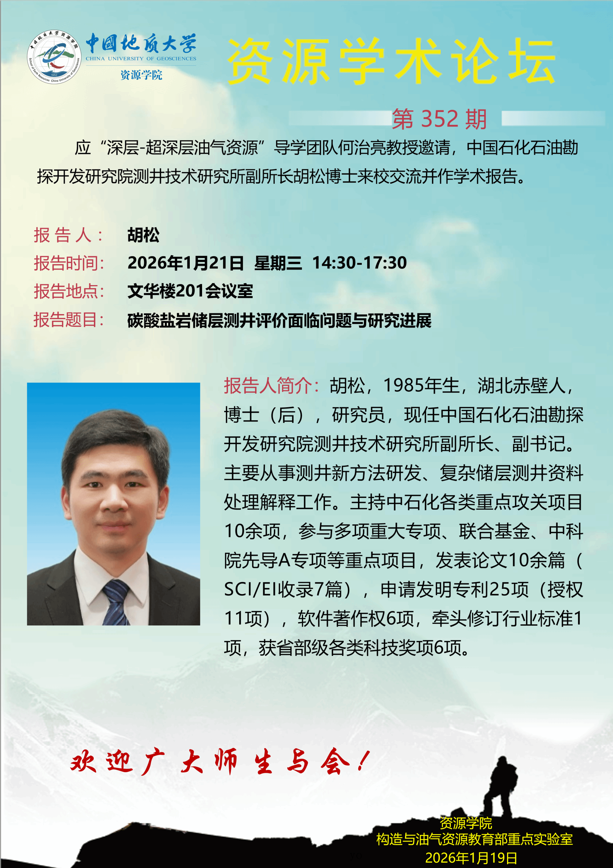 【1月21日】第352期资源学术论坛:胡松学术报告
