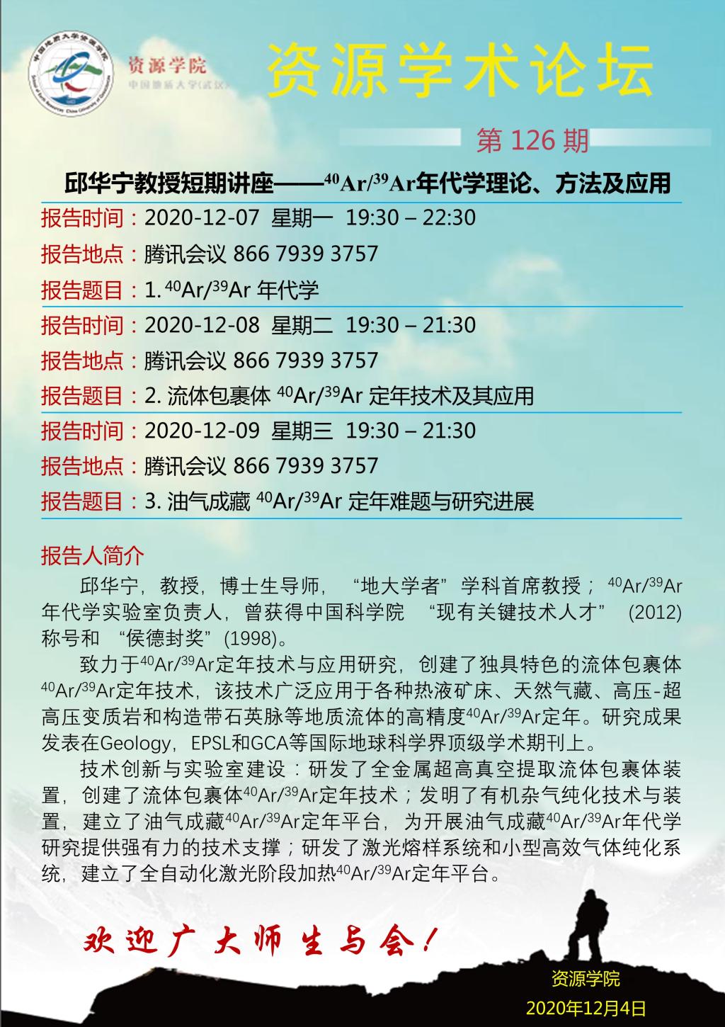 【12月7-9日】第126期资源学术论坛:邱华宁学术报告
