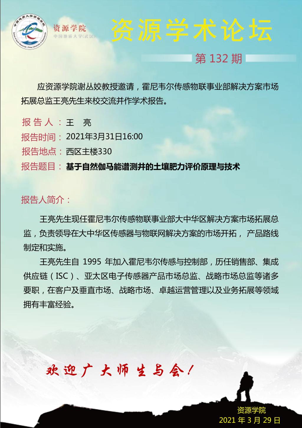 【03月31日】第132期资源学术论坛:王亮学术报告