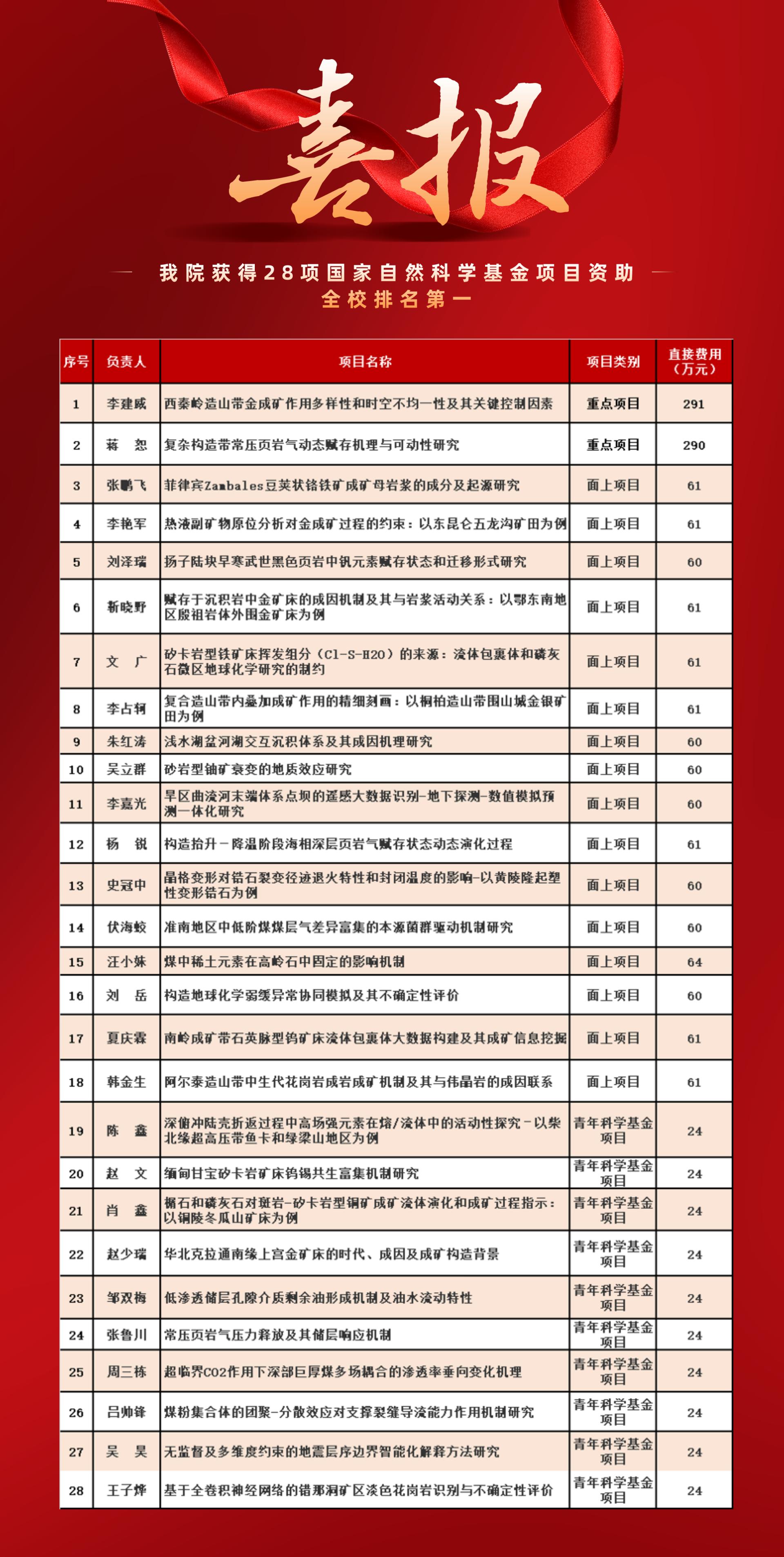 8月18日,国家自然科学基金委员会公布了2021年集中接收期项目评审结果,tyc122ccVIP共有28个项目获得立项资助,再次刷新资助纪录。其中,重点项目2项、面上项目16项、青年科学基金项目10项,直接资助费用共计1793万元。