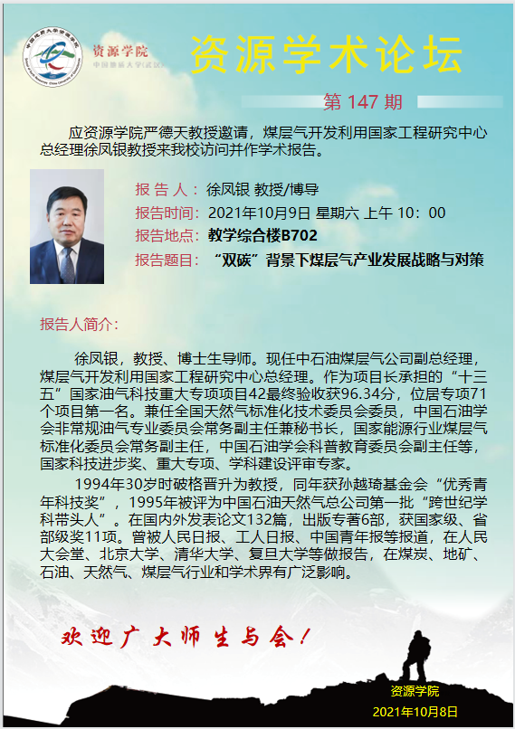 【10月9日】第147期资源学术论坛:徐凤银学术报告