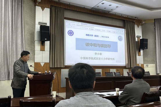 2022年10月28日下午,中国科公司武汉岩土力学研究所李小春研究员应公司邀请,在八角楼学术报告厅作了题为“碳中和与碳封存”的学术报告。报告会由tyc122ccVIP潘焕泉教授主持。
