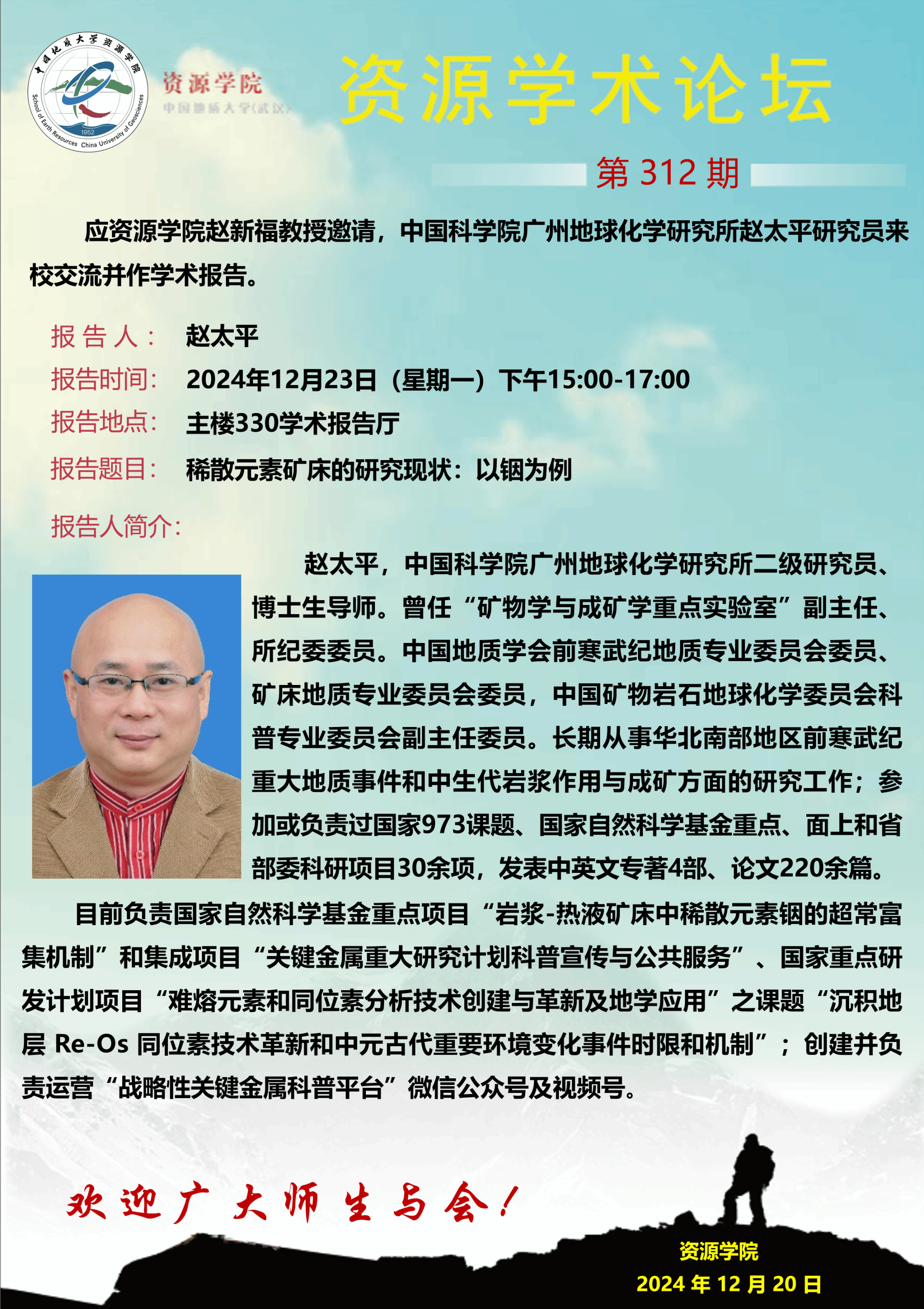 【12月23日】第312期资源学术论坛:赵太平学术报告