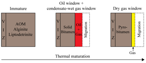 图2生油型显微组分在热成熟过程中的演化路径