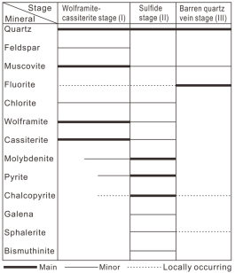 图2 Hermyingyi矿床矿物生成顺序和阶段划分