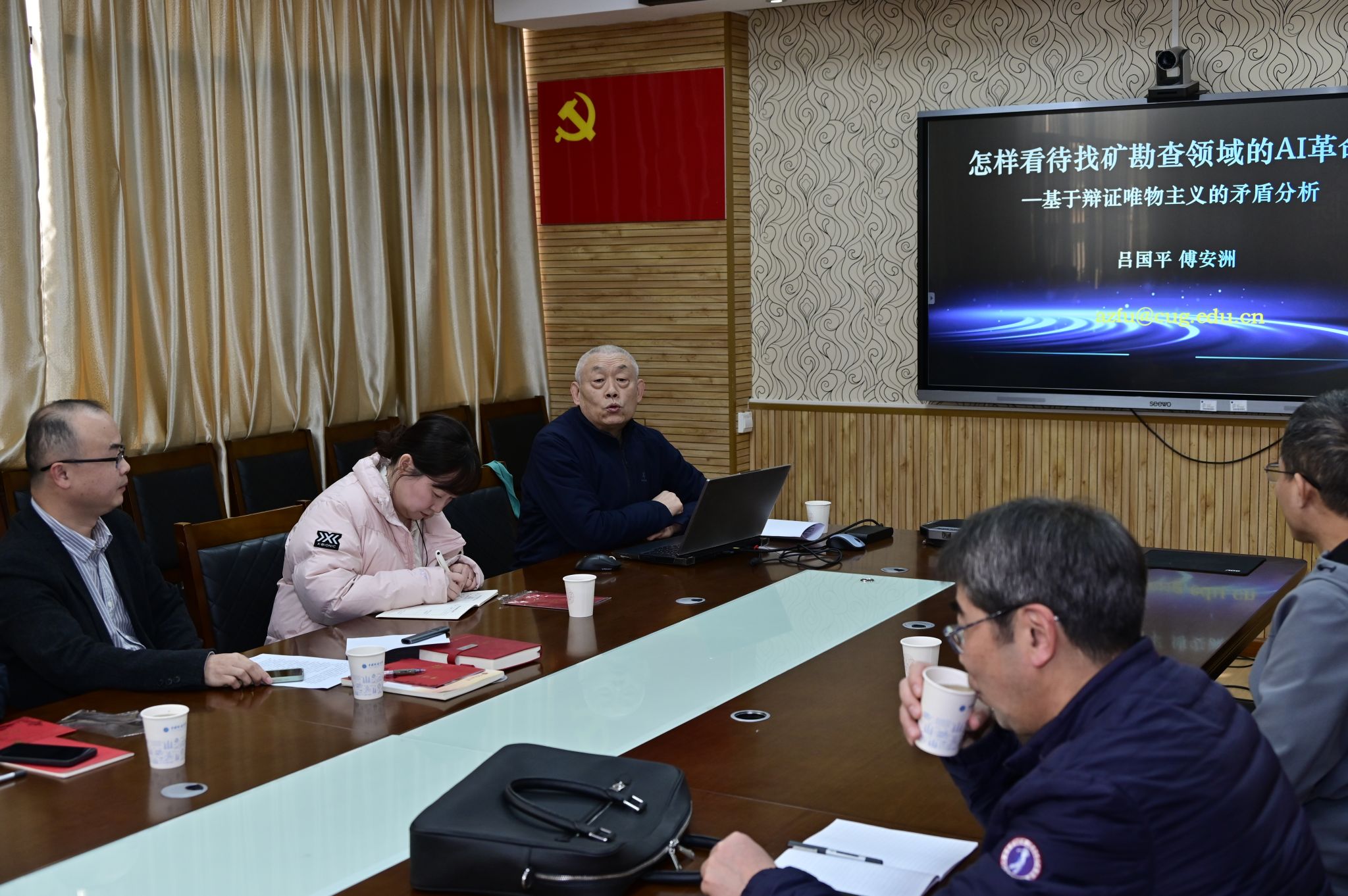 傅安洲教授以“怎样看待找矿勘查领域的AI革命——基于辩证唯物主义的矛盾分析”为题讲授专题党课。他指出,找矿勘查的本质是一个不断发现、分析和解决矛盾的辩证认识过程,AI技术以新形式放大、转化和重塑了找矿勘查领域的传统矛盾。他提出,应将人工智能等现代技术深度融入课程教材,构建“地质+AI”复合知识结构;坚持课堂教学与高水平野外实践并重,推动科研反哺教学,培养员工理论联系实际的系统工程能力;同时注重地学哲学思维培养,引导员工运用辩证唯物主义方法论,借助AI技术提升科学决策与创新能力。