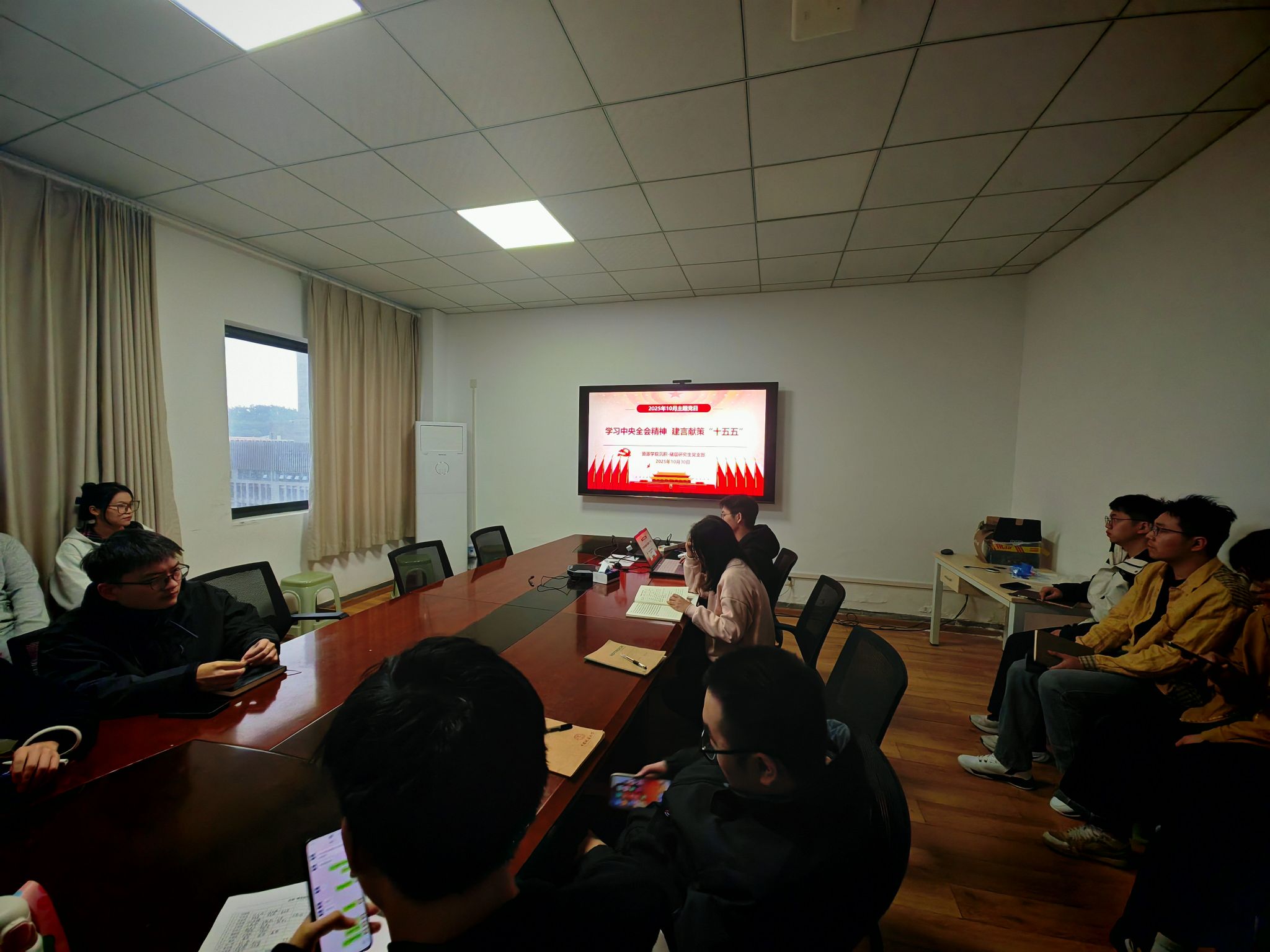 (通讯 张文康)2025年10月30日,tyc122ccVIP沉积-储层研究生党支部在老珠宝楼801会议室举行十月主题党日活动。活动以“学习中央全会精神,建言献策‘十五五’”为主题,结合公司“红星引领计划”,深入开展政治理论学习与党员履职交流。支部全体党员和部分入党积极分子参加。