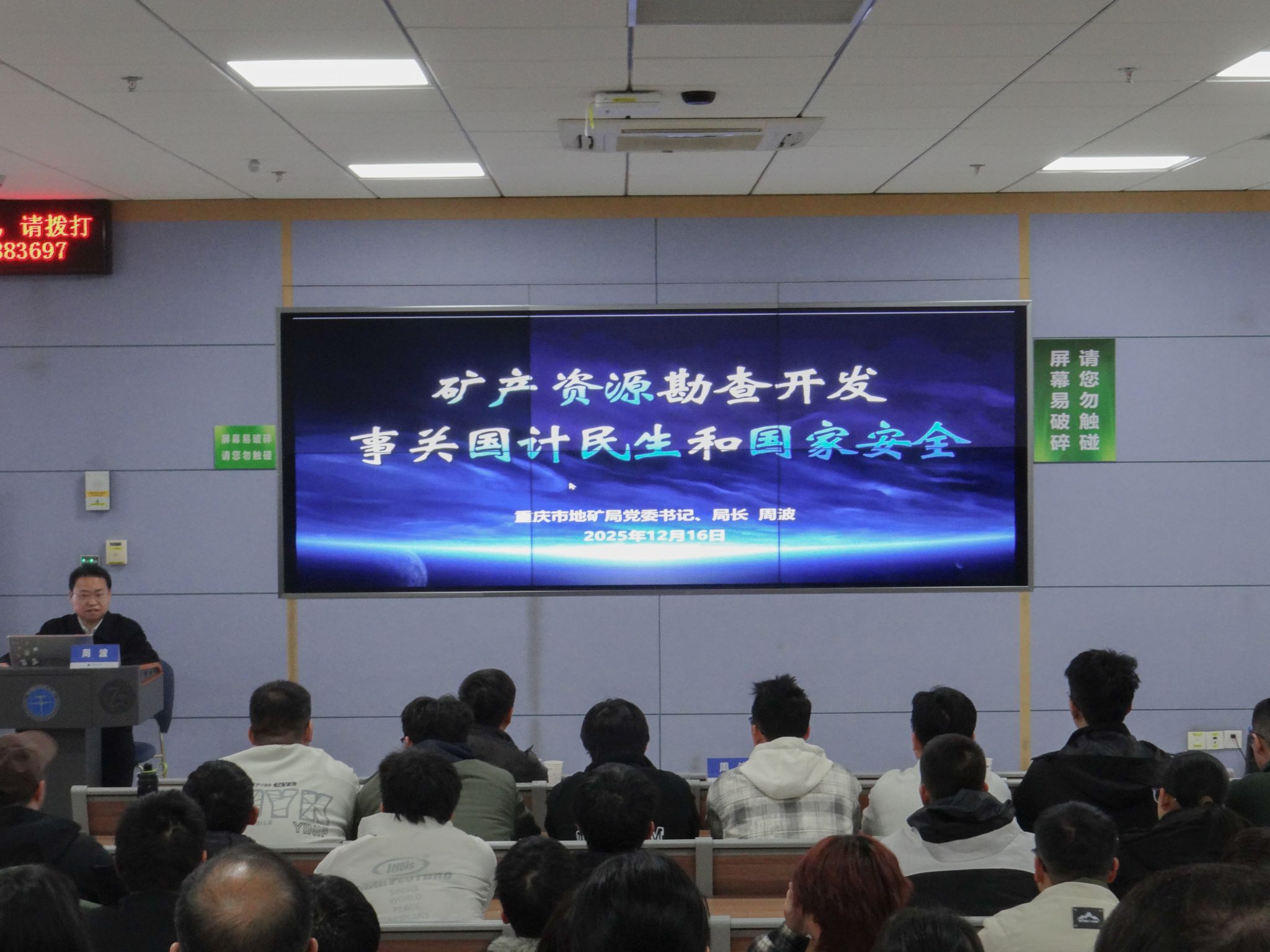 为弘扬地质工作优良传统,引导青年学子树立专业报国志向、明晰行业发展方向,近日,tyc122ccVIP于东教C座C0206教室举办2025年秋季学期地质找矿先进事迹报告会。重庆市地质矿产勘查开发局党委书记、局长周波主讲,重庆市地质矿产勘查开发局相关领导、专家,tyc122ccVIP师生参加会议。谭文伦主持会议。