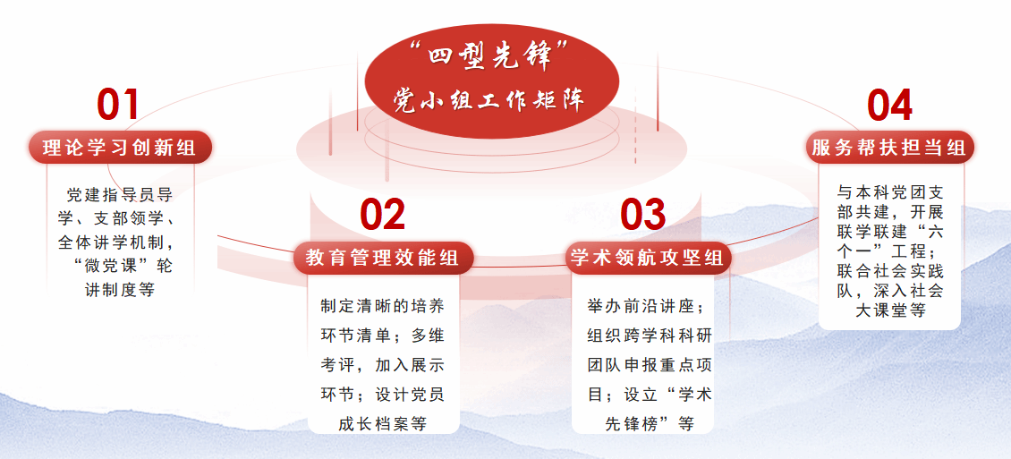 凝聚协同育人力量。师生共建“青蓝结对”平台,构建“理论学习+教育管理+学术领航+服务帮扶”的“四型先锋”工作矩阵,在3个重大项目上建立党小组,成员参与在晋东北新发现金资源超80吨。支部涌现出国家级人才4人、李四光优秀博士生奖2人、博士后创新人才计划入选2人。