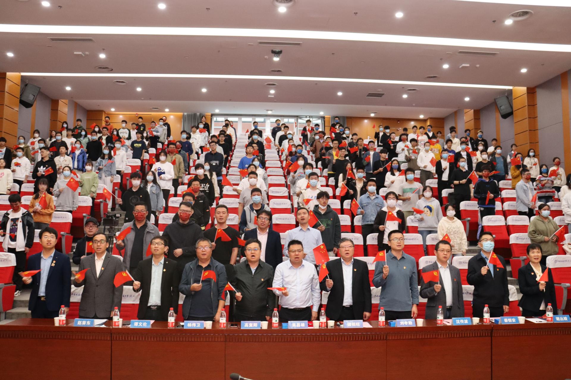 储祖旺为tyc122ccVIP“资源能源宣讲团”授旗。武汉市委宣讲团成员、副经理沈传波教授,“志留纪”科普平台负责人、资源勘查工程专业2020级本科生吕骏腾代表接旗。