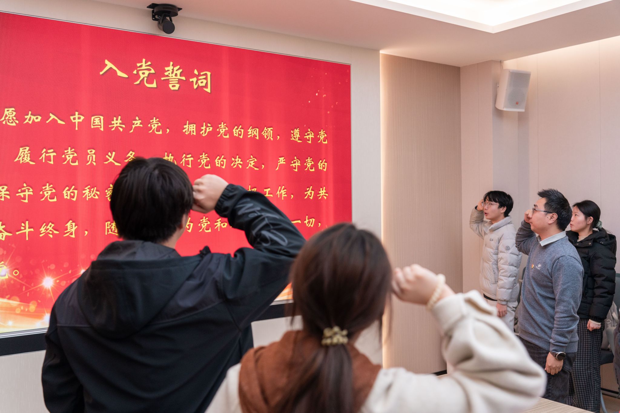 会上举行重温入党誓词仪式,公司党委书记汪再奇领誓。