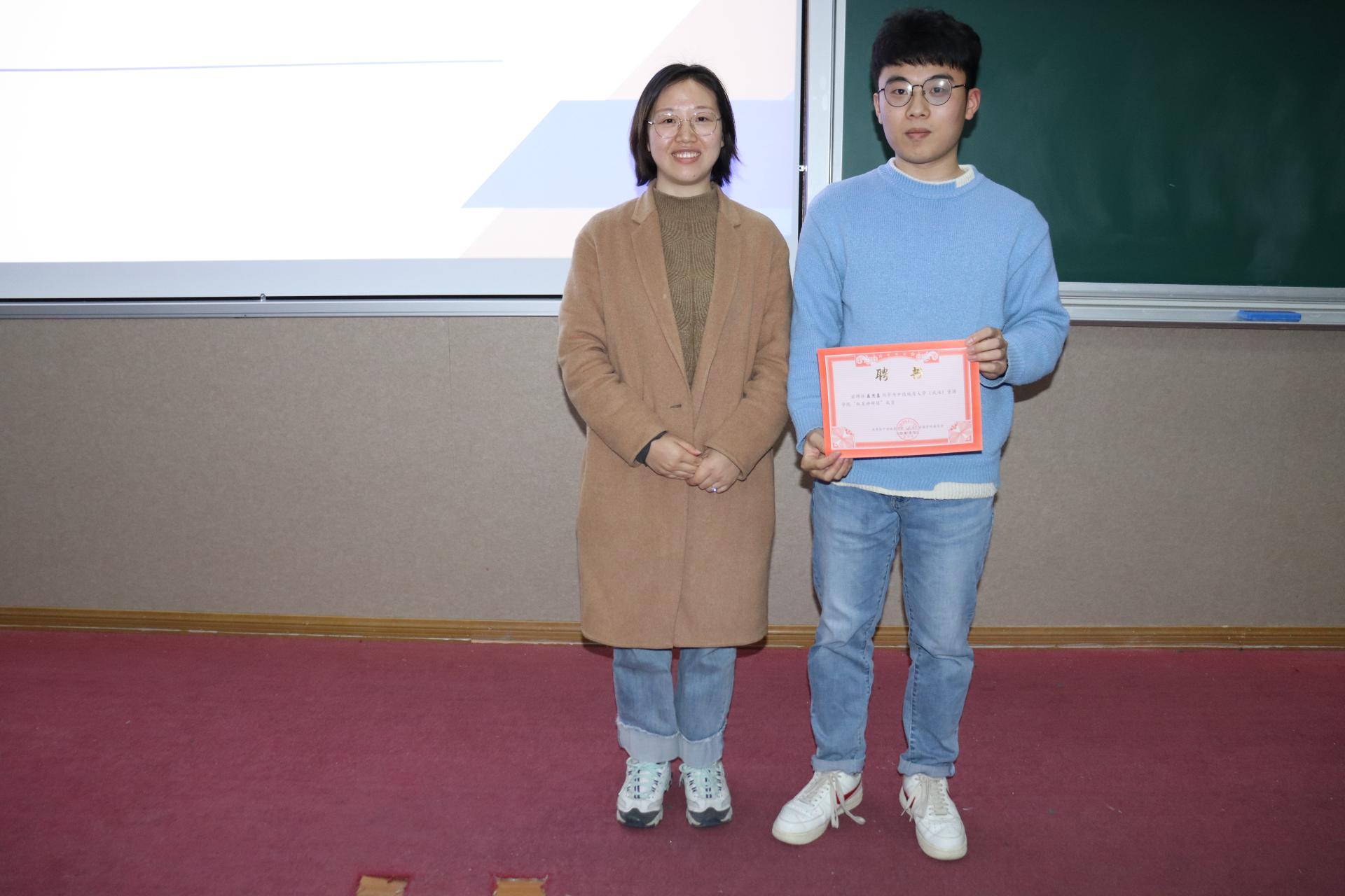 聂思嘉以“ 不负韶华,且行且诗:我的蜕变之路”为主题,从个人履历,老员工活总论,专业学习,员工工作,实践锻炼,课外拓展等六个方面讲述了丰富多彩的老员工活。在轻松愉快的氛围中讲述了自己从一名挂科员工到以优异成绩保研的蜕变之路。