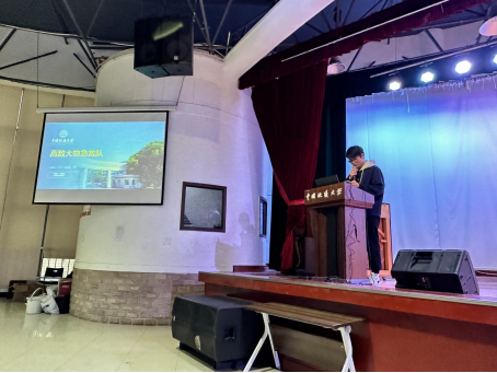 公共管理公司志愿服务团队李翊政以“青春·真情”的志愿底色为基点,着重介绍了“1+4+10”部门发展模式,生动地讲述了协会开展应急救援科普、疫情防护口罩分发、发现“身边的雷锋”主题征文等特色品牌活动和校园服务活动场景。
