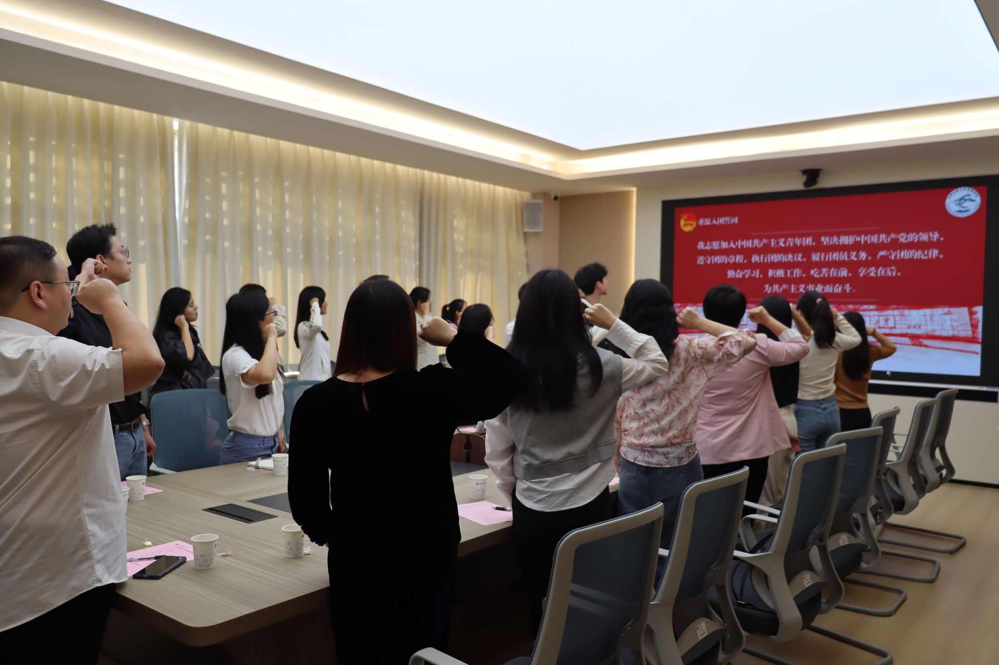活动在激昂的团歌中拉开帷幕,与会人员重温入团誓词。