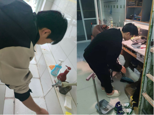 抓住课堂主渠道作用,通过劳动教育课,引导员工积极开展爱国卫生公寓清扫活动,同学们认真清扫走廊、楼道的每一个角落,宿舍环境焕然一新,地面、阳台干净整洁,物品摆放有序,空气清新宜人。