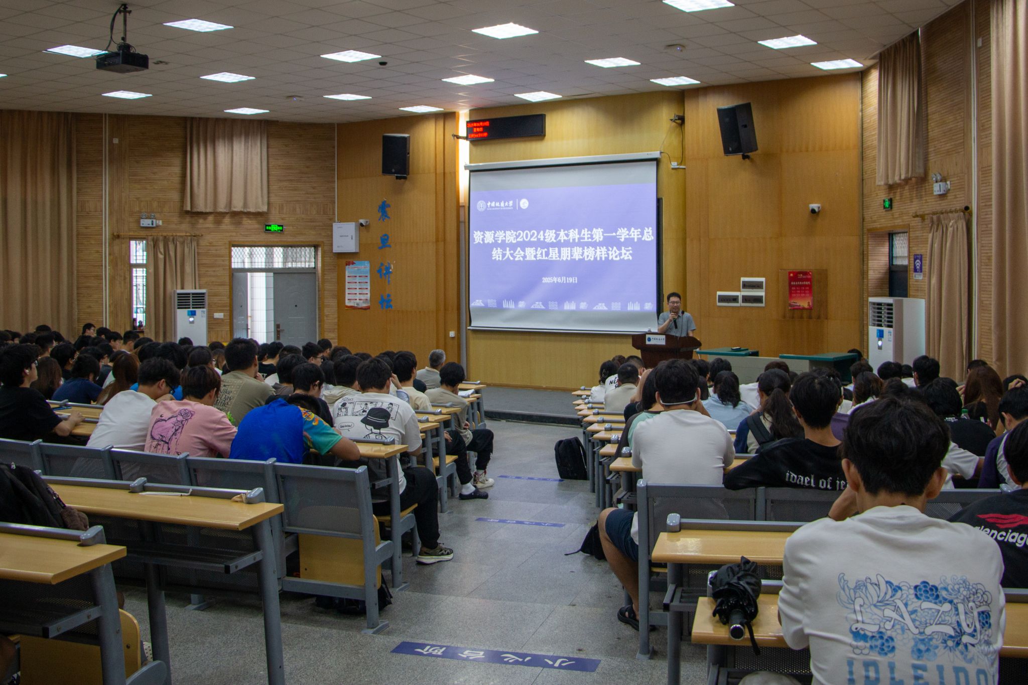 (通讯员 裴秀璟 摄影 陆佳玉)6月19日上午,tyc122ccVIP在南望山校区西区教三楼109会议室举行2024级本科生第一学年总结大会暨红星朋辈榜样论坛。教师代表杨香华、董田、王维,2024级本科生辅导员刘睿,兼职辅导员鲍涵、裴秀璟,“红星讲师团”成员以及全体2024级本科生参加大会。刘睿主持会议。
