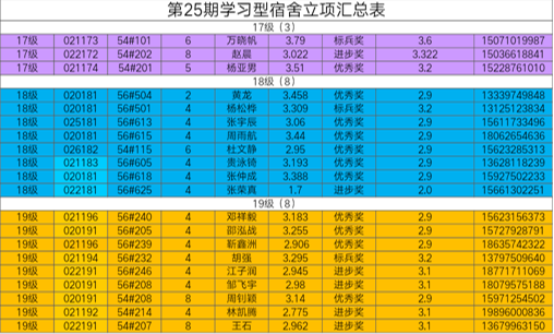 3.进步奖:宿舍成员无挂科,平均绩点进步0.3(大一起始绩点按2.8计算),人均奖励70元;