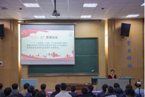 明萌同学介绍“一二·九”爱国运动。她讲解了“一二九”爱国运动的由来、过程和现实启迪,通过一则视频带大家走进“一二·九”爱国运动,号召同学们铭记历史,勇担青春责任,树立“立志成才、专业报国、献身国家资源能源事业”的价值追求,做一个爱国家、爱民族、具有正能量的新青年。