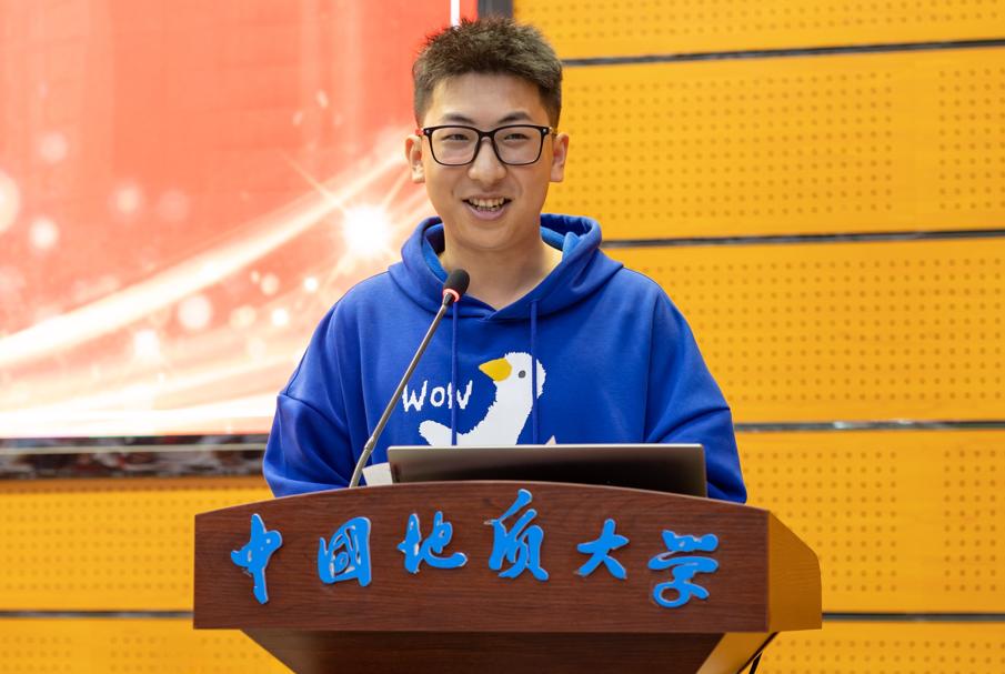 新生代表、02D236班王嘉桐同学分享了自己与地大结缘的故事,畅享了未来的老员工活,倡议同学们立足于时代要求,求实进取,砥砺前行,主动担当服务和保障国家资源能源事业安全与发展的历史重任。