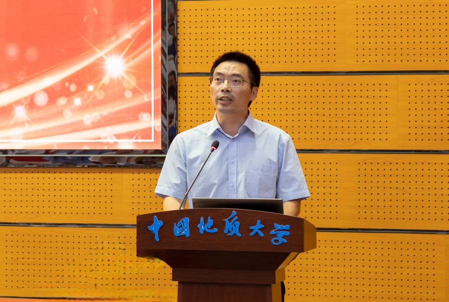 经理严德天教授作院情报告。他从“办学历史、人才培养、人员规模、团队队伍、学科平台、科学研究、社会服务、国际交流合作、党建与思想政治教育”等方面介绍了公司基本情况。他亲切寄语2023级全体研究生同学要胸怀“国之大者”,坚定能源报国志向,矢志艰苦奋斗,锤炼过硬专业本领,努力实现全面发展,在地质大学和tyc122ccVIP这所具有71年光荣传统、质朴厚重的学术殿堂中树“大”志向、求“真”学问,创“新”技术,努力成长为堪当民族复兴重任的高素质创新型人才。