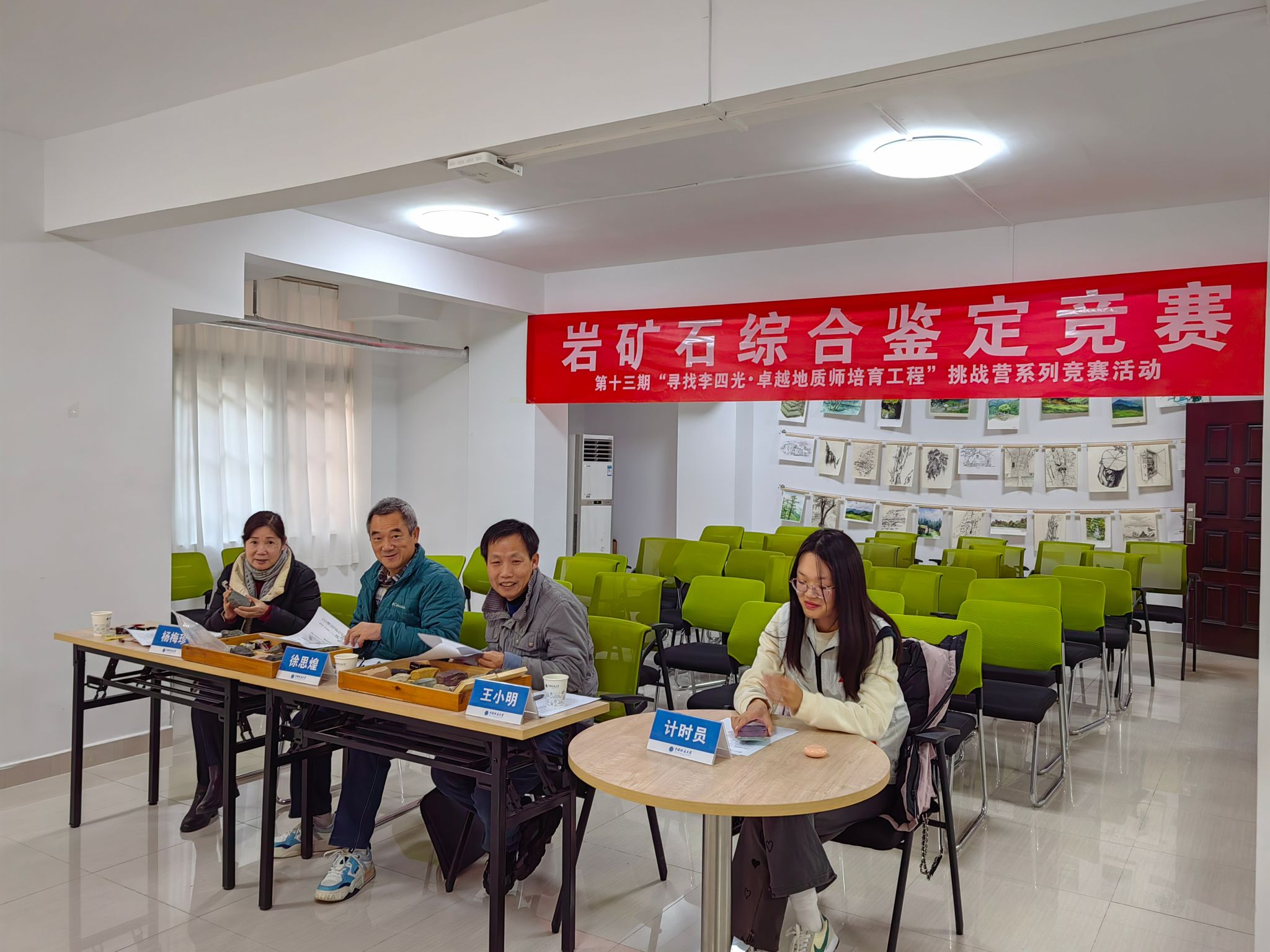 较往届活动,本次赛事创新了比赛形式,邀请不同专业领域的老师到现场及时地、直接地指导员工们的岩矿鉴定过程,确保参赛员工能够学会、学懂、能用,真正拓展了专业技能培养的新形式、新方法。周江羽、徐思煌、杨梅珍、王小明、李晶、张鹏飞等评委老师为选手们提供悉心指导和耐心教学;江满容、陆建培等老师在光、薄片鉴定环节的准备工作和现场指导过程中提供了大力支持;组委会和志愿者同学们倾情付出,顺利完成精选标本、组织抽签、布置场地、筹备物料、现在引导、完成计时等工作,保障了赛事的顺利有序开展。