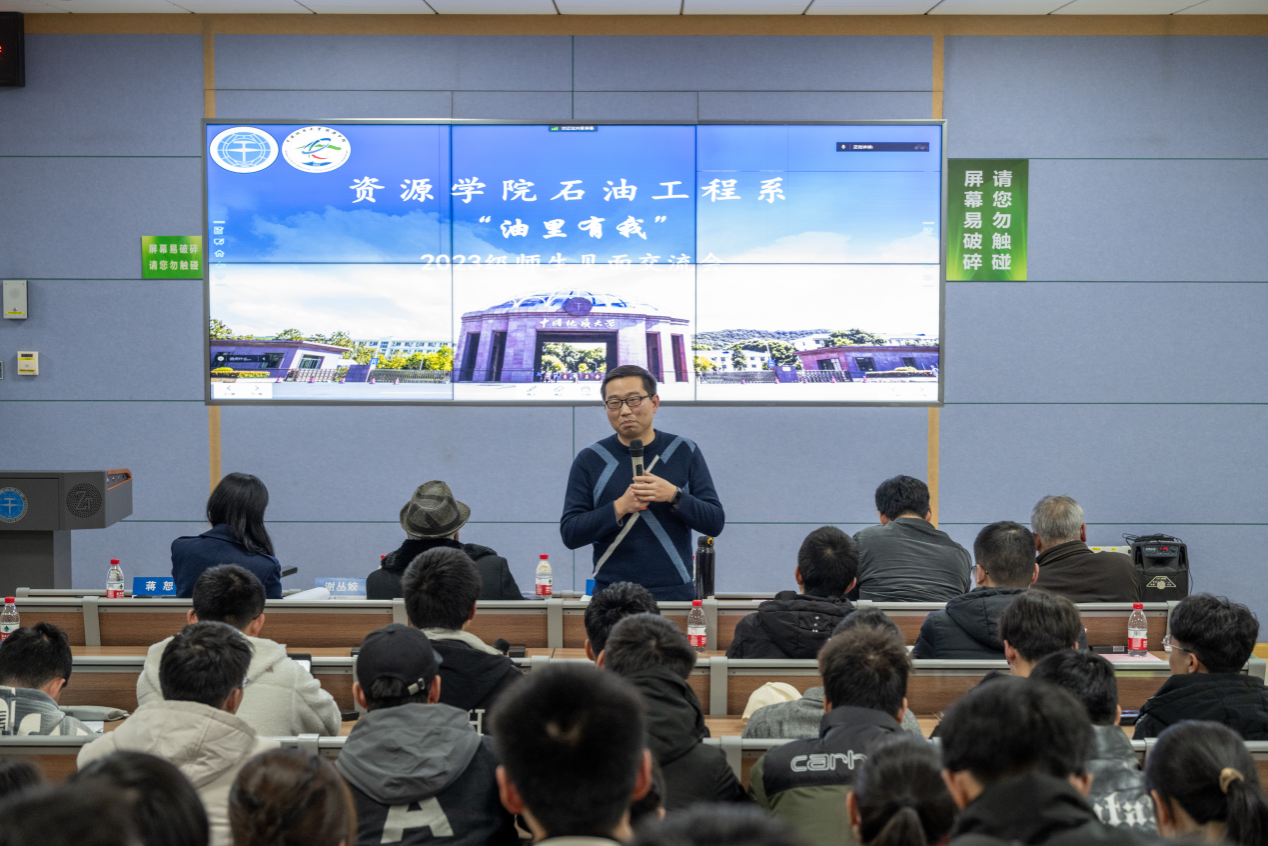 2023年12月27日晚,tyc122ccVIP石油工程系在东区综合教学楼C栋0106举办了“油里有我”2023级本科生师生见面会。此次活动旨在进一步增强员工对专业的认知、增进师生的交流与了解,为员工未来学习与科研打下基础。公司教学监督员马立祥,公司党委副书记谭文伦,石油工程系支部书记谢丛姣、系主任蒋恕及顾军、龚斌等石油工程系全体教师参加会议。石油工程系副主任钟志主持交流会。