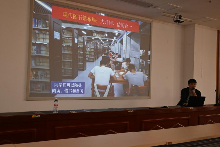 肖萍新老师为大家讲解了中国图书分类法,她从理论讲解入手,并以两本馆藏图书为例,向大家详细讲解了在图书馆借书时如何从图书编号入手,快速从书架上找到自己想要借阅的书籍。
