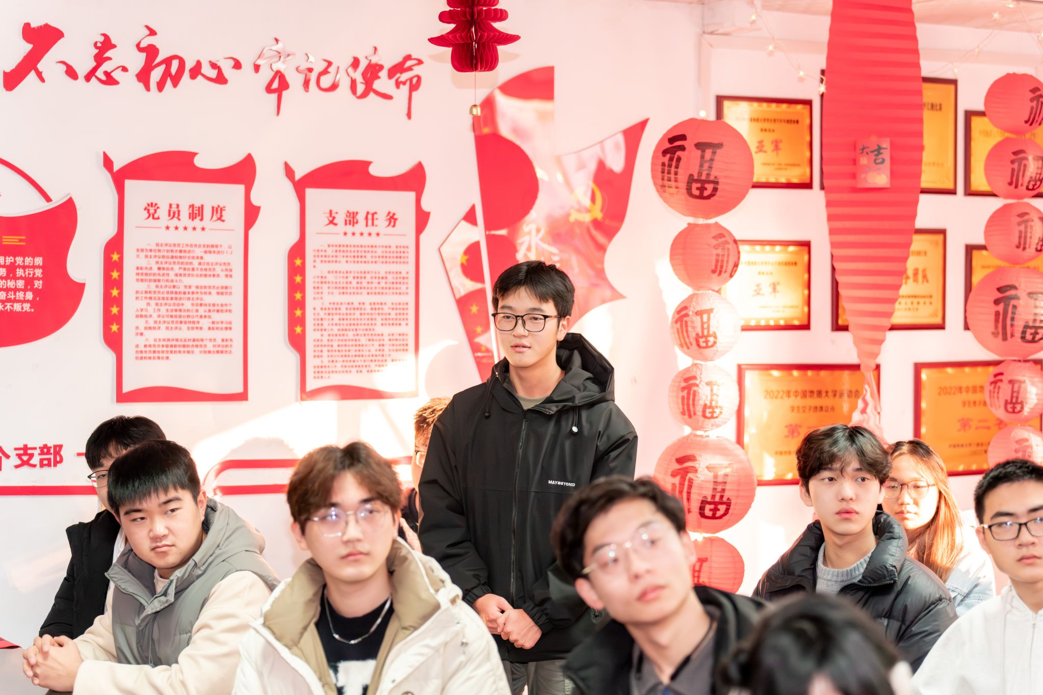 汪再奇、严德天了解了同学们近期学习生活情况,倾听了同学们在学业、生活等方面的诉求,耐心解答了同学们的问题,并向大家致以新年问候,希望同学们在新的一年立新目标,展新风采,幸福快乐,健康成长。随后,院领导为2025年原创春联作品获奖个人颁发奖品。