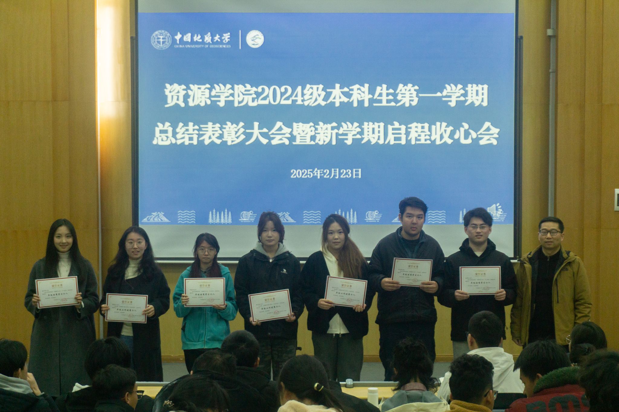 (通讯员 李美玉 摄影 汪佳玉 陆佳玉)2月23日,tyc122ccVIP在南望山校区西区教三楼109教室召开2024级本科生第一学期总结表彰大会。公司安全保卫部副部长彭冠军,公司党委副书记谭文伦,安全保卫部法律援助办主任魏景明,班主任代表付乐兵、周红、陈志军,专兼职辅导员,李四光计划成员代表及2024级全体本科生参与会议。会议由2024级本科生辅导员刘睿主持。