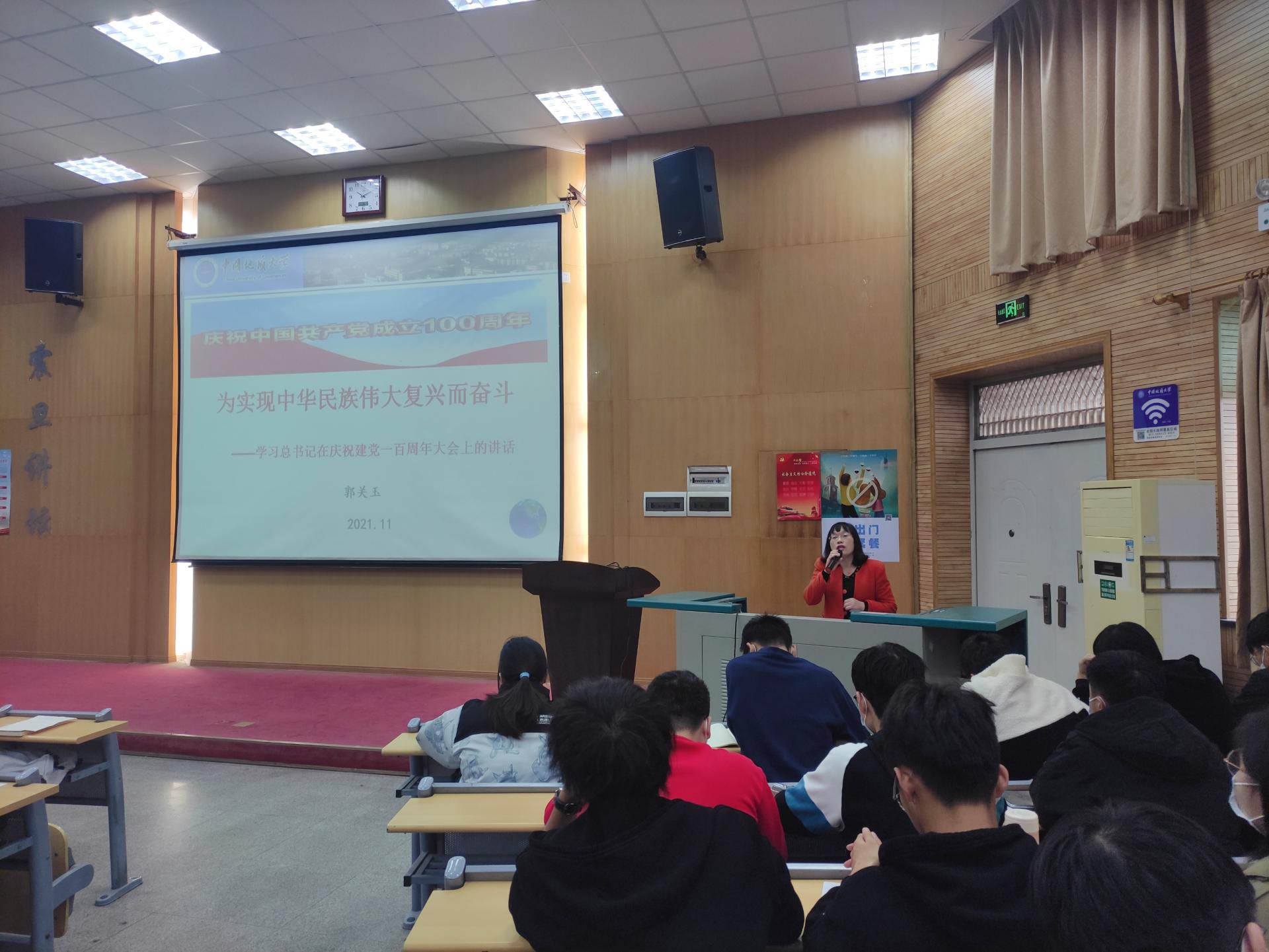 郭玉关老师以《为实现中华民族伟大复兴而奋斗》为题,从“七一”重要讲话的重大意义、中国共产党百年的伟大成就、百年的经验、开辟未来等方面,带领学员深入学习习近平总书记在庆祝中国共产党成立 100 周年大会上的重要讲话精神。