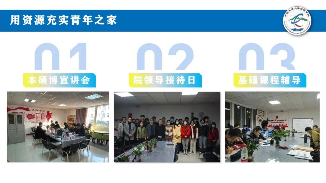 开展零距离院领导接待日,解答专业分流、课程设置等疑问;开展本硕博培养政策宣讲会;组织基础课程辅导30余次,用资源充实青年之家。