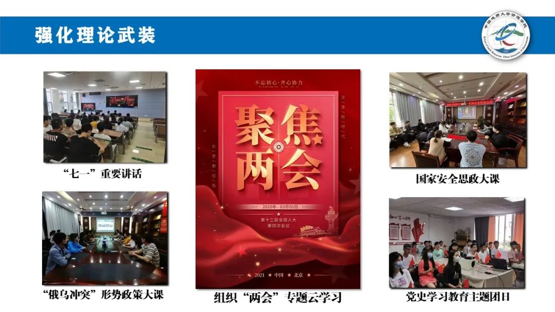 强化理论武装。依托公司青马班,以党史教育为主线,开展理论学习。定期例会实现学习常态化;共学“7·1”讲话、两会报告,共上俄乌冲突、国家安全思政大课。