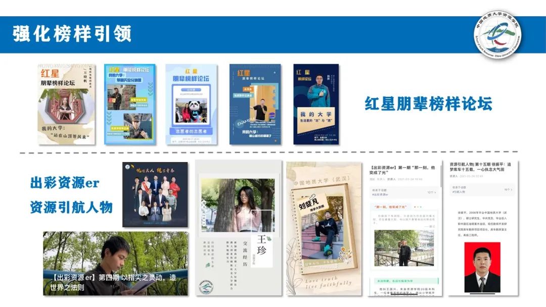 青年榜样最有说服力,青春话语最是动人心。我们打造《资源引航人物》《出彩资源er》,推出《红星朋辈榜样论坛》,学霸大神、双创达人、优秀员工走进同学,激励资源学子勤学、乐学。