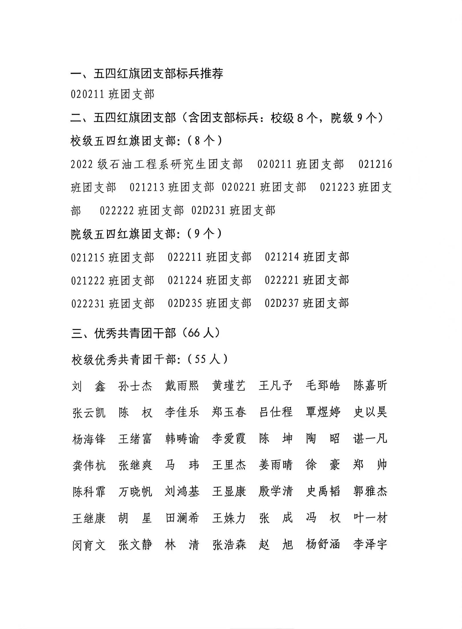4. 因获得2023-2024年度五四红旗团支部的支部书记或副书记(班长)直接认定为优秀共青团员或优秀共青团干部的名单由校团委组织部报送。