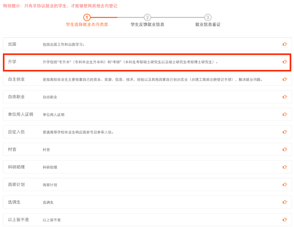 此类方式适用于6月10日之前尚未确定毕业去向的毕业生。员工登陆后按照毕业去向填写“待就业”,档案建议回原籍。