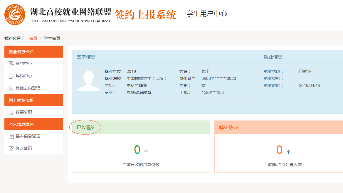 网上签约毕业生登陆显示页面