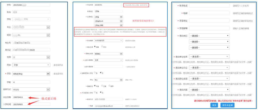 注意事项:生源所在地填写请根据填报系统中的指导意见进行填写。生源地是指毕业生高考前户籍所在地,一般与父母户口所在地相同。