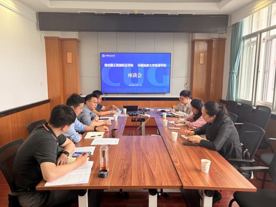 4 月 11 日,湖北国土资源职业公司副董事长朱文晶一行来院调研,就绿色矿业产教融合共同体建设进行交流座谈。资源公司党委书记汪再奇、副经理李占轲,公司三级单位及相关科室负责人参加会议。