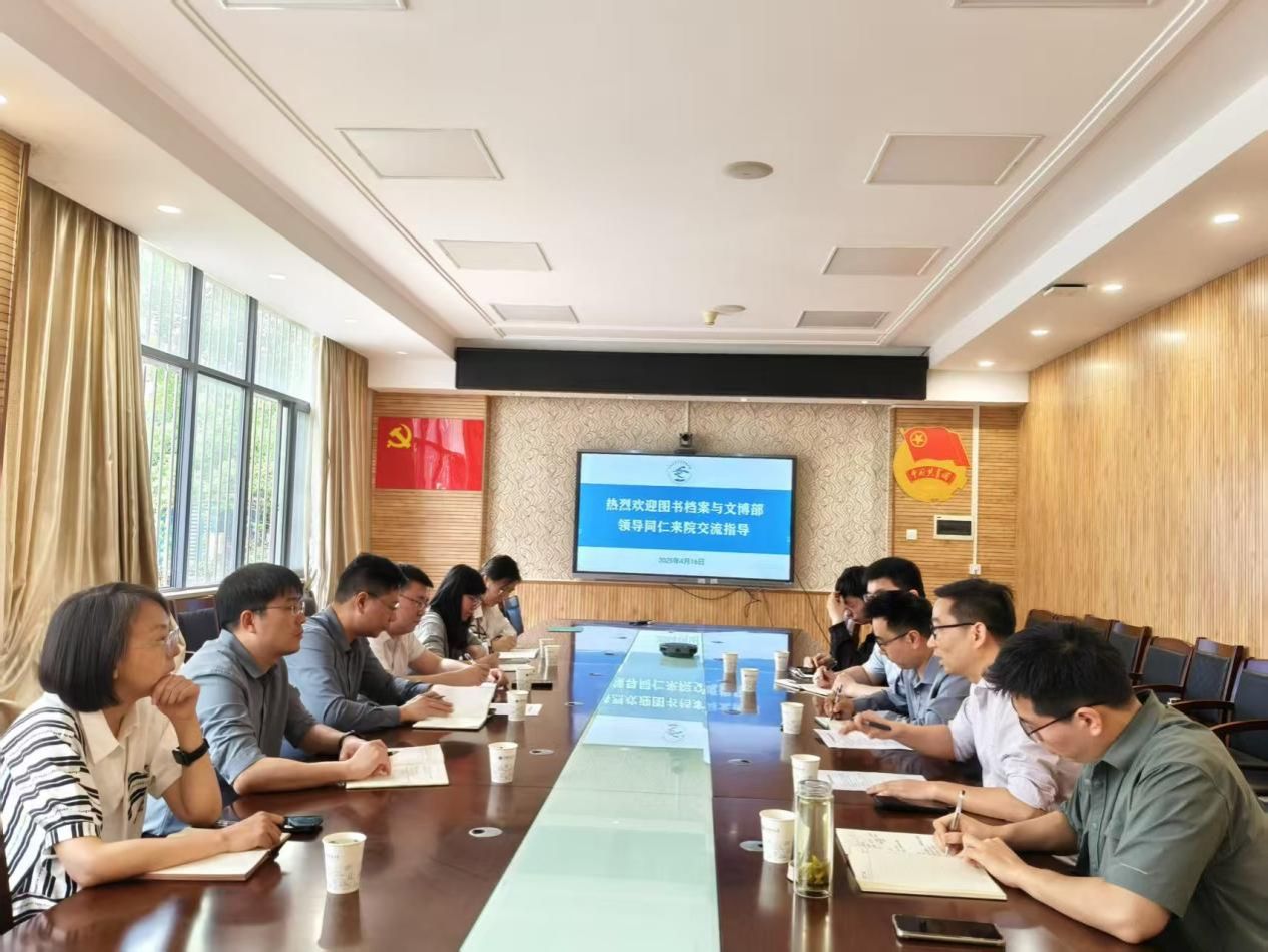 4月16日下午,图书档案与文博部党委书记邓云涛、副部长朱峰等一行来到tyc122ccVIP,就联合开展院馆合作等事宜进行调研交流。公司党委书记汪再奇、党委副书记谭文伦、辅导员彭鑫等参加座谈。汪再奇主持会议。