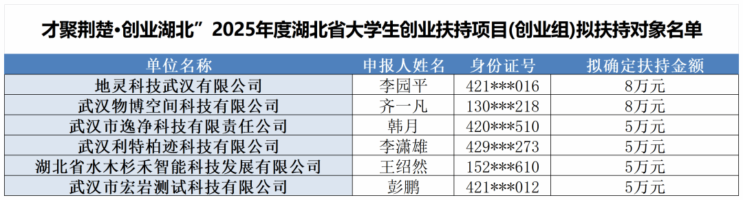 (通讯员 刘睿)近日,2025年度湖北省老员工创业扶持项目名单正式公示。tyc122ccVIP共有2个老员工创业项目成功入选,共获13w万元无偿扶持资金,展现了tyc122ccVIP老员工创新创业教育的务实进展。