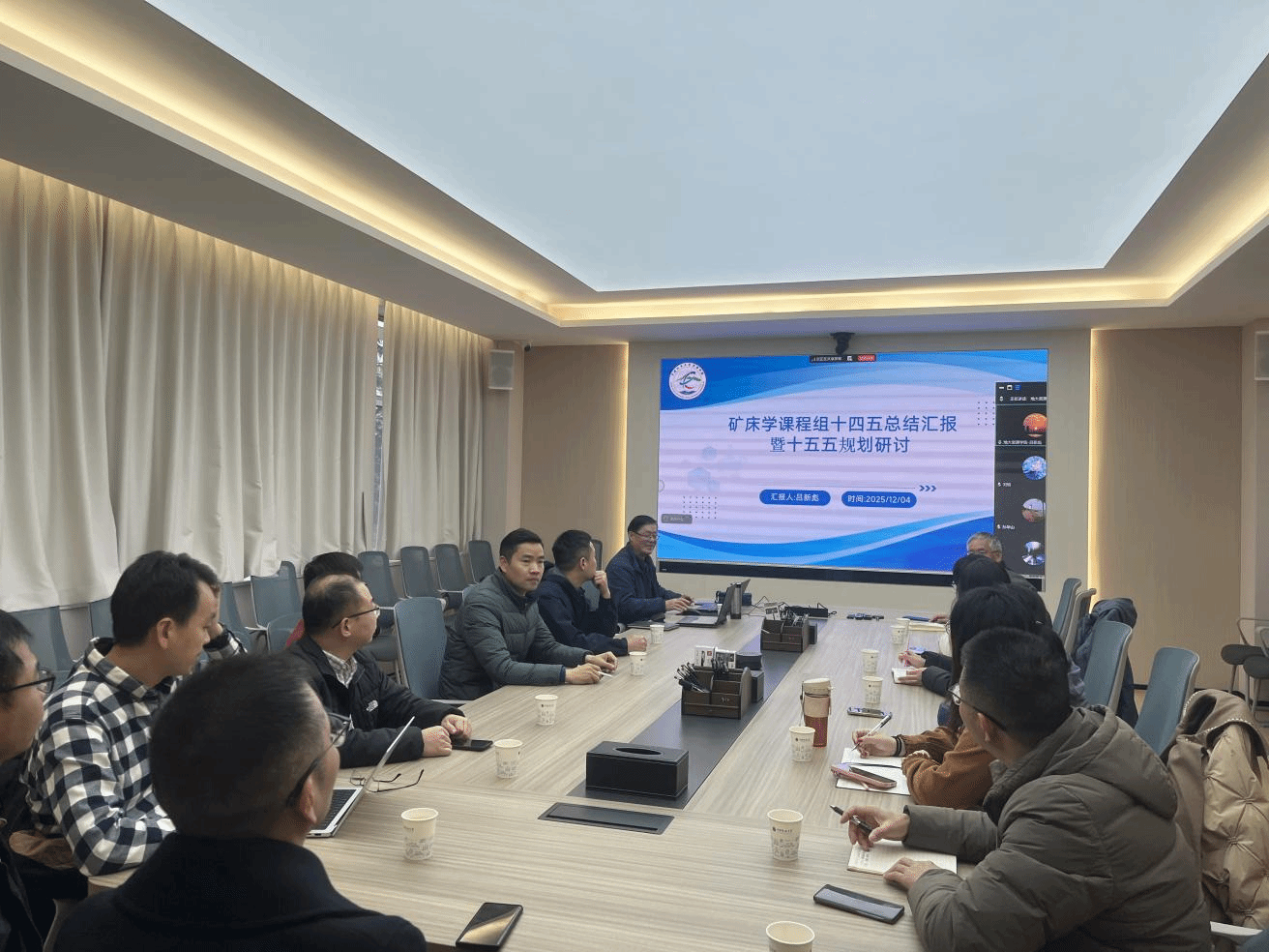 会议首先回顾了“十四五”期间课程组取得的丰硕成果。吕新彪教授系统介绍了课程组在课程建设、教学改革、教材编写、实践教学、员工培养等方面取得的显著成绩。五年来,课程组高质量完成了年均约50个班级、共计11门本科必修与选修课程的教学任务,并承担了资源勘查工程专业多个野外实习基地的教学及毕业实习指导。在教学研究与资源建设方面,课程组获批7项教学研究项目,出版4部教材,发表8篇教学论文,荣获国家级教学优秀成果二等奖1项。《矿床学》于2020年获批国家级一流本科课程(线下),《矿石学》于2024年获批湖北省一流本科课程,标志着课程建设达到国内领先水平。