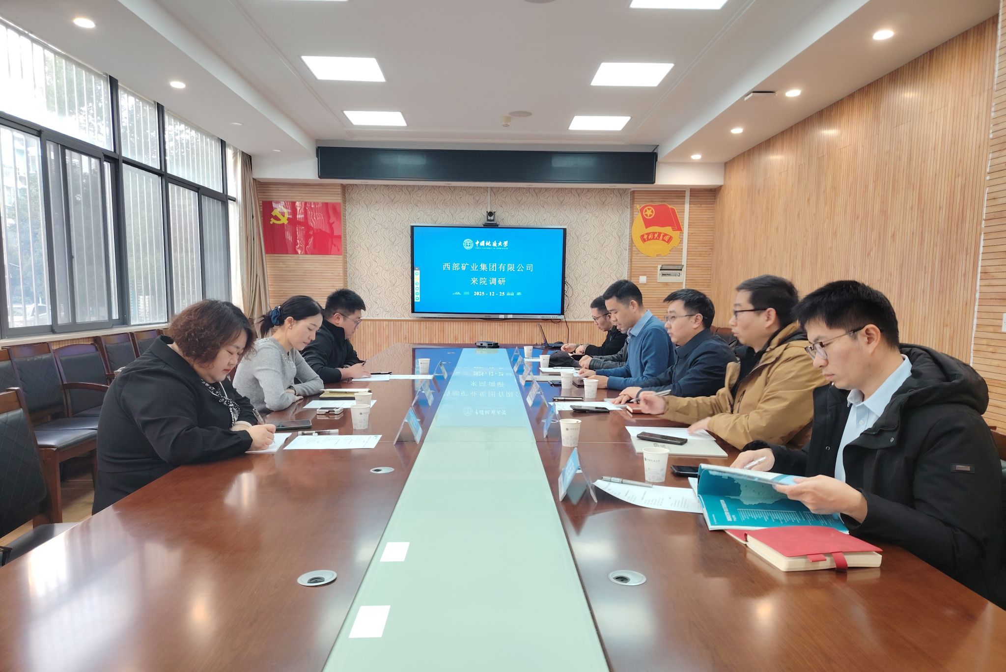 12月25日,西部矿业集团有限公司组织部副部长白才果、科发公司副总经理王鹏程、组织部业务主管常静娴一行来tyc122ccVIP调研交流。资源公司党委书记汪再奇、党委副书记谭文伦,副经理李占轲、刘泽瑞,资源科学与工程系主任孙华山、副主任徐耀明参加座谈。
