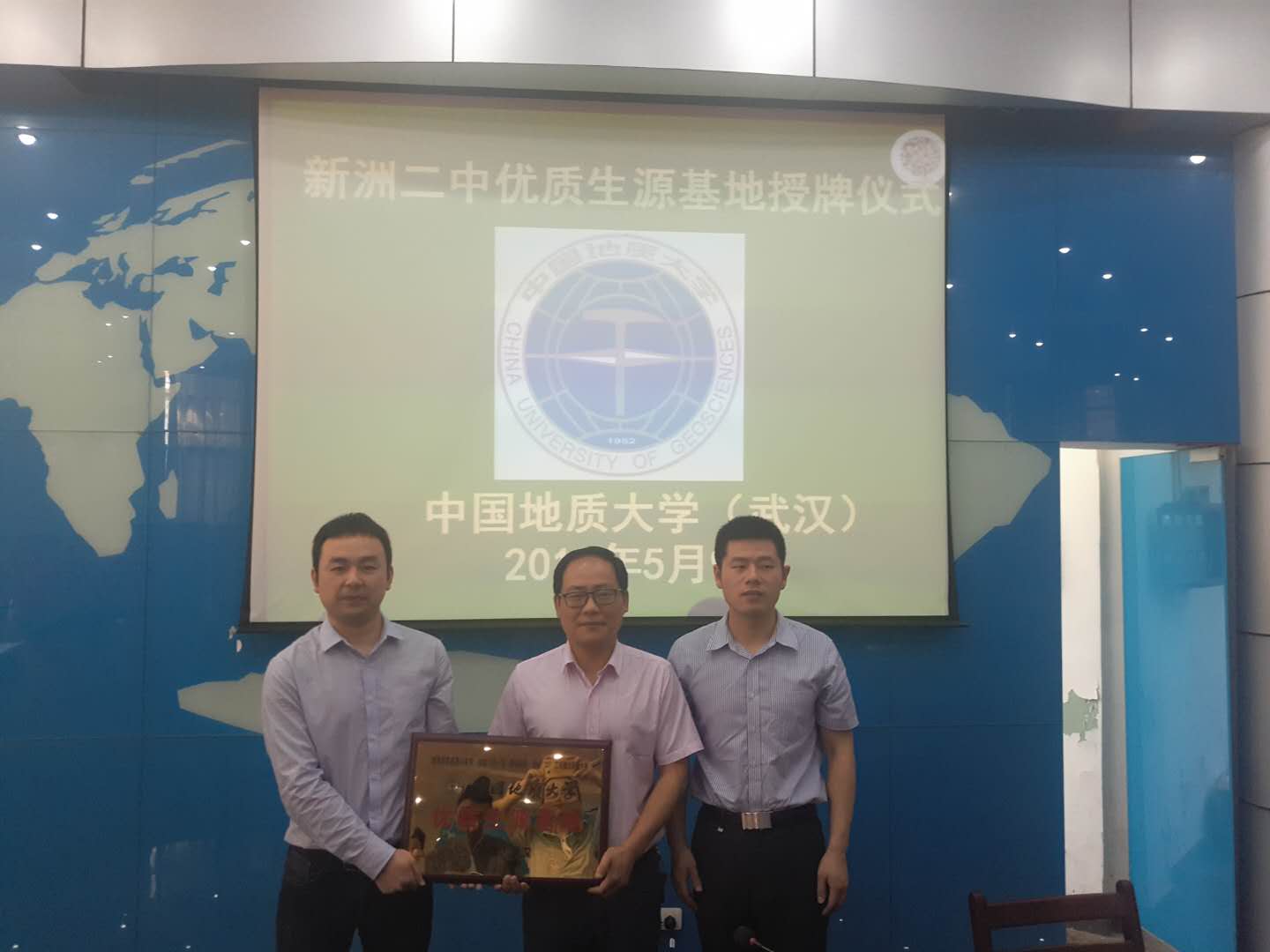 随后,邹字安签订《联合共建优质生源基地协议书》,徐尚为新洲一中授予“优质生源基地”铜牌。接着,双方就公司自主招生政策、新洲一中生源情况、新洲一中希望地大给予的支持等方面进行了详细交流。