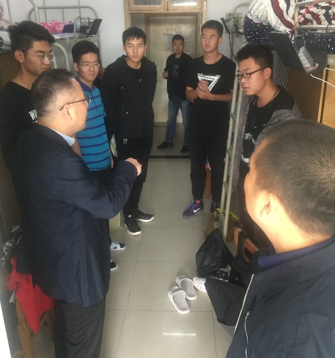 根据公司2018年以“三联三帮”为主题的“两访两创”活动统一部署,10月30日中午,资源公司党委书记李宇凯、党委副书记张建华、学工组辅导员一行5人对员工寝室进行了走访慰问,与同学们亲切交流,以了解同学们的生活,倾听同学们的声音。